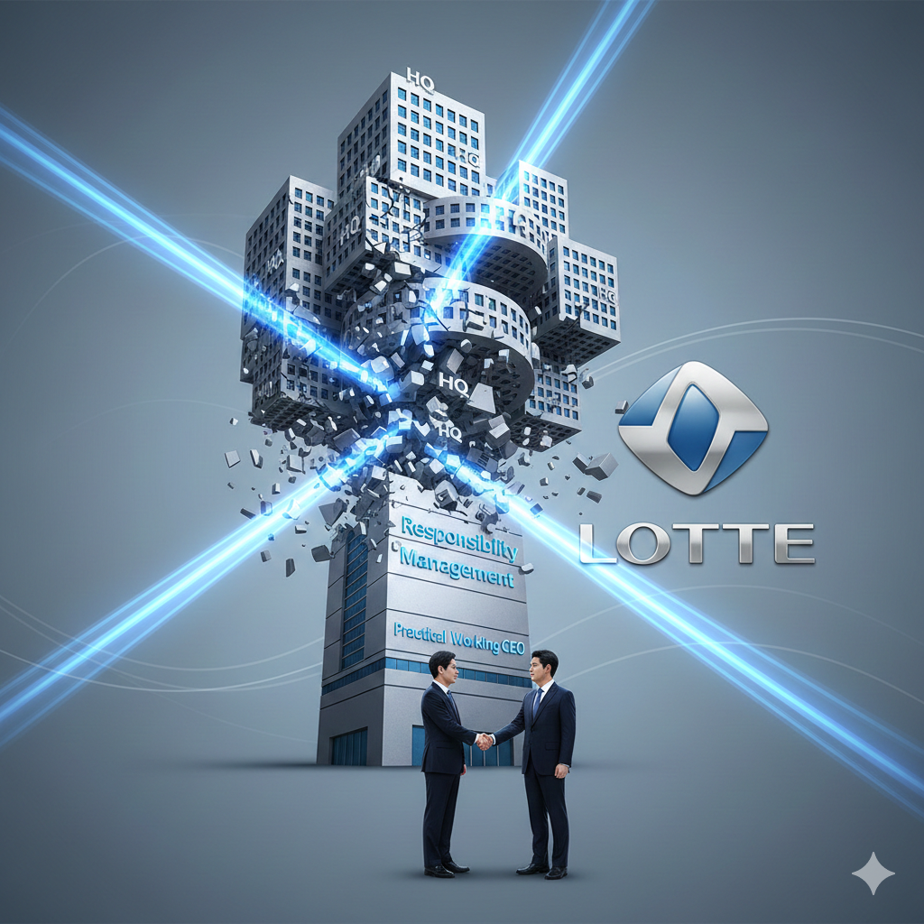 부회장 전원 퇴진과 HQ 폐지로 대표되는 롯데의 이번 인사는 **'관성과의 결별'**을 선언하는 강력한 시그널입니다. 기존의 복잡하고 느린 의사결정 구조를 깨고, 실무형 젊은 경영진의 자율성과 책임 아래 위기를 정면 돌파하겠다는 것입니다.